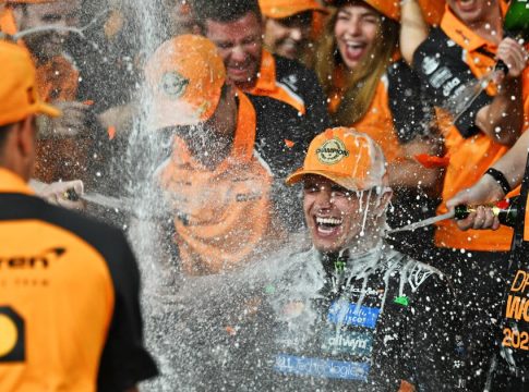 When Norris arrived at McLaren’s headquarters, the entire team lined up to form a guard of honor, cheering wildly as their champion walked through.